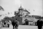 Enligt Bengt Lundins noteringar: "Hotellet från sjösidan. Kyrkan. Lyckorna".
