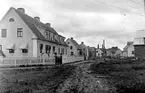 Bilden ser ut att vara tagen på Kungsgatan i Floby och visar nybyggda hus på Trädgårdsgatan. Huset till vänster är där Galleri Colon varit.