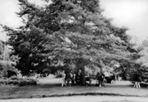 Till vänster Sven Gjems, stående Sally Rundberget, till höger Kåre Torp och Bror Finneskog