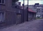 Östra Sjögatan. I bakgrunden ses Kalmar stadshus och stadshotellet med sitt torn. Bilderna är tagna inom ramen för Kalmar kommuns inventering av Kvarnholmens bebyggelse 1970-1971 och skänkta till länsmuseet.