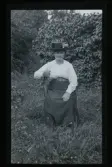 Porträtt av en ung man fotograferad utomhus. "Hugo Karlsson, Julita kvarn."