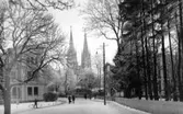 Grupp framför hus på Nääs Slöjdlärarseminarium