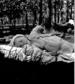 Kommunalarbetarnas julfest år 1948 i Skara. Kaffe och tårta klart för servering av damerna fru Tropp, fru Anna Andersson, fru Selva Lindqvist och längst till höger Kickan Ståhl. Stående manlige medhjälparen Nils Ohlsson.