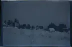 Bystad skola. Skolhuset, fasaden mot trädgården, på vinter. Bilden har i kanten en tryckt text: "jan 69". Dateringen avser när bilderna framkallades. Den måste dock vara tagen tidigare, eftersom huset målades om sommaren 1968. Det troligaste är att den togs vintern 1967-68 och att rullen framkalldes senare.