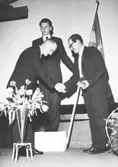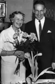 Marianne Andersson som Eliza Doolittle och Gösta Kjellertz som Henry Higgins i "My Fair Lady" efter blomsterhyllningen på Torsbyscenen.