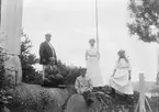 Festligheter i fruktträdgård. Flaggdag. Okänd plats i Berg, 1901.