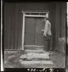 I porten till Castens (Christian Cerstens) gård står en man i vit keps och vit arbetsjacka. Storgatan, Kalmar.