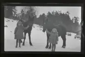 "Dammkärr, Stina och Ingrid Karlsson" Två flickor håller varsin häst.
