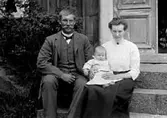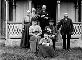 SLÄKTKALAS MED MÄN OCH KVINNOR SAMT ETT BARN RUNT ETT DUKAT BORD.