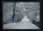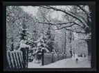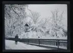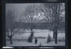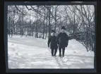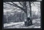 Barn på skidor. På tomten till familjen Morthensens villa Solveden, Djursholm.