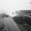 Bilden föreställer en vy från pansarskepp Drottning Victoria mot kusten och ett annat örlogsfartyg. Runt fartygen och mellan kusten pågår en livlig trafik med småbåtar.