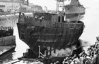JÄGAREN VEDETTBÅT Under byggnad vid Örlogsvarvet i Karlskrona 1934.