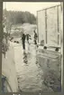 Bilden visar två sjöminor som står ombord på en torpedbåt klara för fällning.