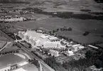 Utsikt över heden. Till vänster syns några baracker och till höger skymtar sjukhuset mellan träden.