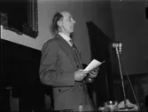Folkpartiets årsmöte på TR-lokalen. 2 april 1949. Reportage för Gefle Dagblad.