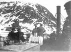 "Midsommar": S A Andrée, H Zachau, N Ekholm samt N Strindberg med fiol ombord på Virgo.
