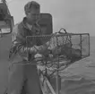 Silversmed 20 augusti 1965 En silversmed i färd med att tillverka en silverring. Han håller en svets i sin högra hand samt ett verktyg i sin vänstra hand.