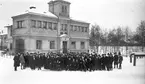 Ramnäs sn, Surahammar. Brinnande badhus i Ramnäs (f.d. kraftstation). 1971.