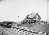 Uppsala - Enköpings Järnväg, UEJ personvagnar på stationen. Plattform i trä