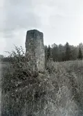Skioptikonbild med motiv av Menhirer i Carnac. Bilden har förvarats i kartong märkt: Resan 1908. XIX.