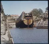 Cementas lastfartyg NORDANVIK förlängs i Gustaf V-dockan på Beckholmen 1975