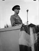 "Flaggfest i väta blev imponerande manifestation" - generalmajor Douglas talar, nationaldagsfirande på Studenternas Idrottsplats, Uppsala juni 1943