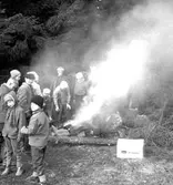 Dokumentation av jordbruk, här svedjelandsbränning i Slobyn i Värmland. Man dämpar elden efter kanterna med granrisruskor.
