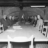 Pd Erik Karleson längst bort i fonden och fr.v. Uno Abrahamsson, Göran Agndal, Filip Ludvigsson, Erik Rosén, Rune Stöth, Per-Olof Bachman, Folke Werner. I bakre raden fr.h. Nils Olof Andersson, Sven Erik Fransson, Gunnar Ahlbom, Torben Dimberg, Ragnar Ehnar och Stig Gartman samt nämndsekreteraren Gösta Nilsson. I soffan bakom sitter Sture Abrahamsson t.v. och Arne Björklund.