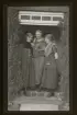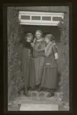 "Österåker" Tre kvinnor med pälskragar står på farstubron till ett hus.