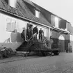 Bild från flytten av en paviljong som då antogs vara Grand hotells serveringspaviljong. Bilden är tagen från tidningen Östgötens fönster på St Larsgatan 17. Paviljonen flyttades från Badhusgatan 5 till Gamla Linköping, den var en gåva från Östgöta correspondenten. Flytten skedde november 1958. Ny forskning visar att byggnaden uppfördes som fotoateljé 1874. ... 385 bilder om Linköping på 1950-talet från tidningen Östgötens arkiv. Framtidstro och optimism är ord som sammanfattar Linköping på femtiotalet. Årtiondet innebar satsningar för att förbättra linköpingsbornas livsvillkor. Bostadsfrågan och trafiklösningarna dominerade den lokalpolitiska agendan. Bilderna digitaliserades år 2013.