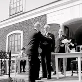 Bibliotekarie Oskar Lundberg och okänd man på Upplands fornminnesförenings våruflykt, sannolikt Skederids socken