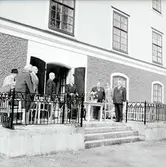 Västergötlands museilotteris tjänstemän fotograferade å närlagda tavla: Från vänster: Häradsskrivaren F. Westberg, Lektoren F. Ödberg, adjunkten V. Lundqvist, Bankdirektören T. Borgqvist, direktören C. O. Muhr, adjunkten G. Holm, Godsägaren F. Norling, Fru Ellen Norling, född Muhr, Fröken Anna Böös, Fru Augusta Wallenqvist, Häradsskrivaren R. Lundström, Ingeniör Öhrwall.
