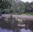 Gävle stad Stadsträdgården, ovanför badhuset Najaden, med svanhuset till höger.