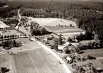 Kyrkåsen, Enköping, vy från nordöst, troligen 21 juni 1911. Vårfrukyrkan till vänster, dåvarande vattentornet till höger.