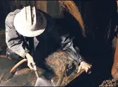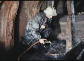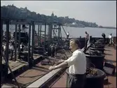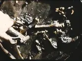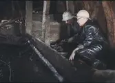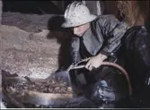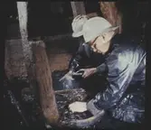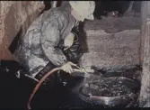 En av dykarna arbetar under vattnet med att täta alla de bulthål som fanns i Vasa vid bärgningen.