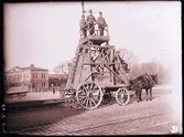 Gruppfoto på hästvagn.