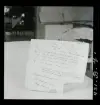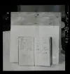 Anteckningsbok som har tillhört Sven-Gunnar Nykvist, förste tillskärare på NK:s Franska damskrädderi från 1960 till 1966. I anteckningsboken som han tog över efter en kollega finns noteringar om kundernas mått samt avvikelser som behövde kompenseras i tillskärningen.