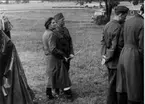 Remonteringsnämndsmöte på Gudhem. Från vänster: ryttm P G Westerström nämndordförande, major Elias Ahlqvist depåchef, okänd, fältveterinär Hellgren, bataljonsveterinär J Munthe, major Sven Littorin.