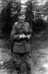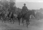 Sekundchef överste Gösta Bergenstråle på sin tjänstehäst på Kaserngården, söder stallarna.