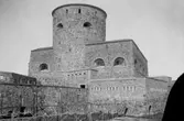 Ingången till fästningen. Ingången till Marstrands fästning med den nuvarande fasta bron som ersatte den förutvarande vindbryggan. Inne på borggården äro en del byggnader, som skeppsgossekåren, vilken är förlagd i Marstrand, använda till sitt förfogande.