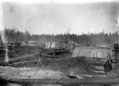 Kolarkojan som "Lillbo-Lars" bodde i under kolningen. Kvinnorna på bilden är Ester Lindberg och Anna Käller.