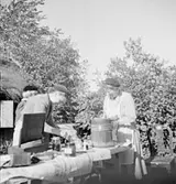 Vykort med motiv av ett skafferi innehållande konserverade varor. Med text på baksidan: Den av eder köpta konserveringssatsen avgår idag pr post vilket vi härmed vill underrätta eder. Vi rekomenderar oss och tecknar Högaktningsfullt Norrlandsdepoten, Sundsvall.