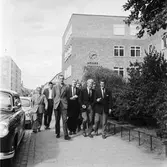 Nyblivna studenter grupperade framför restaurangen i Stadsträdgården med sina lärare under 1920-talet första hälft. Som nr 6 och 7 från vänster ser vi rektor Axel Dahlman och lektor Valdemar Vendel. För den som undrar över den totalt manliga dominansen kan det noteras att det var först 1929 som en kvinnlig elev kunde ta studenten på samma villkor som en manlig i Karlstad. Innan dess kunde man gå upp som s k privatist.