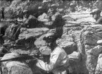 "På vakt för Sverige". Vakttjänst av landstormsmän i bergsklyftorna vid Ransvik, Skåne.