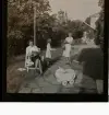 558 Wilhelm Moberg. Vilhelm Moberg står i uniform och läser tidningen vid en spårvagnshållplats.