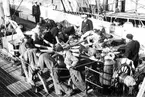 Utspisning ombord på jagaren Halland den 30 mars 1955.