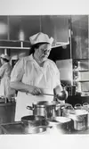 "Kokerskan fru Holmén lagar dietmat". (Lasarettet). Från utställningen "Falköping i bild" 1952.
