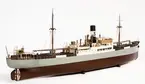 Halvmodell i mahogny, byggd på block. Silverplåt med graverad text. Gåva från direktör E Åkerlund, Stockholm år 1926.