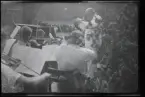 Postflickorna gör reklam från ett lastbilsflak i Göteborg i samband med Postsparbankens 75-årsjubileum, september 1959.
