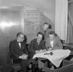 "Aktiv ungdom på Havet Augusti 1957". Bakom männen i restaurang Havet syns en väggmålning av konstnären Pelle (Per Axel) Åberg (1909 - 1964), Stockholm. Motivet föreställer bl.a. Bohusläningens hus i Uddevalla.